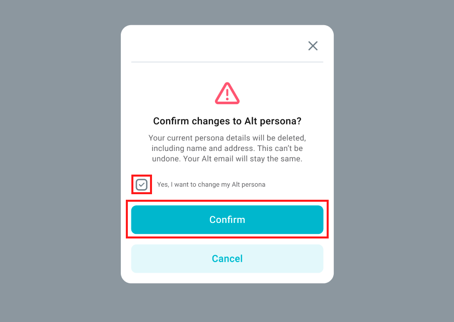 3. Tick the box Yes, I want to change my Alt persona and click Confirm.