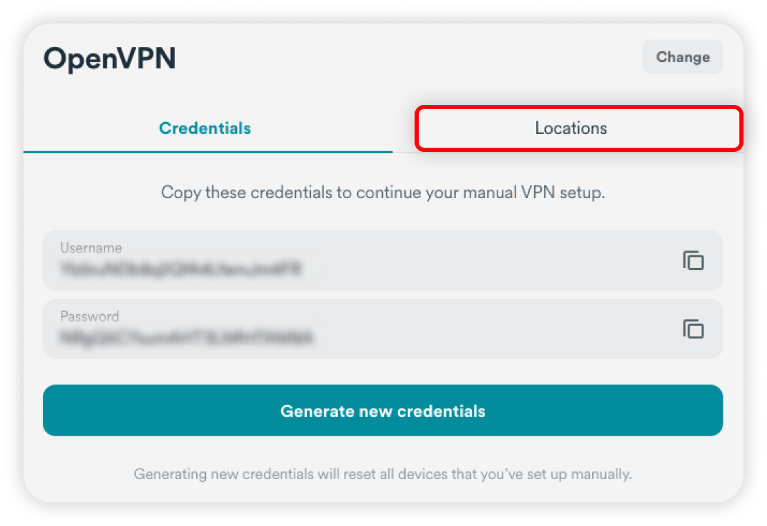 Before setting up OpenVPN, you will need to obtain the credentials for the manual setup and select a server to connect to.