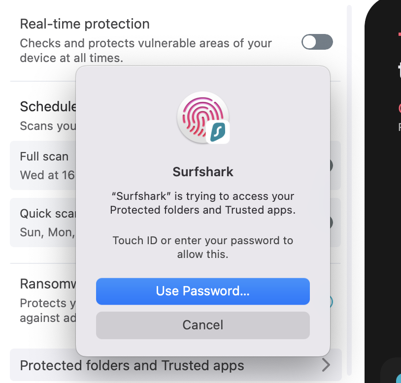 In this article, you will learn how to use the Surfshark Antivirus Ransomware Shield feature on your macOS device.