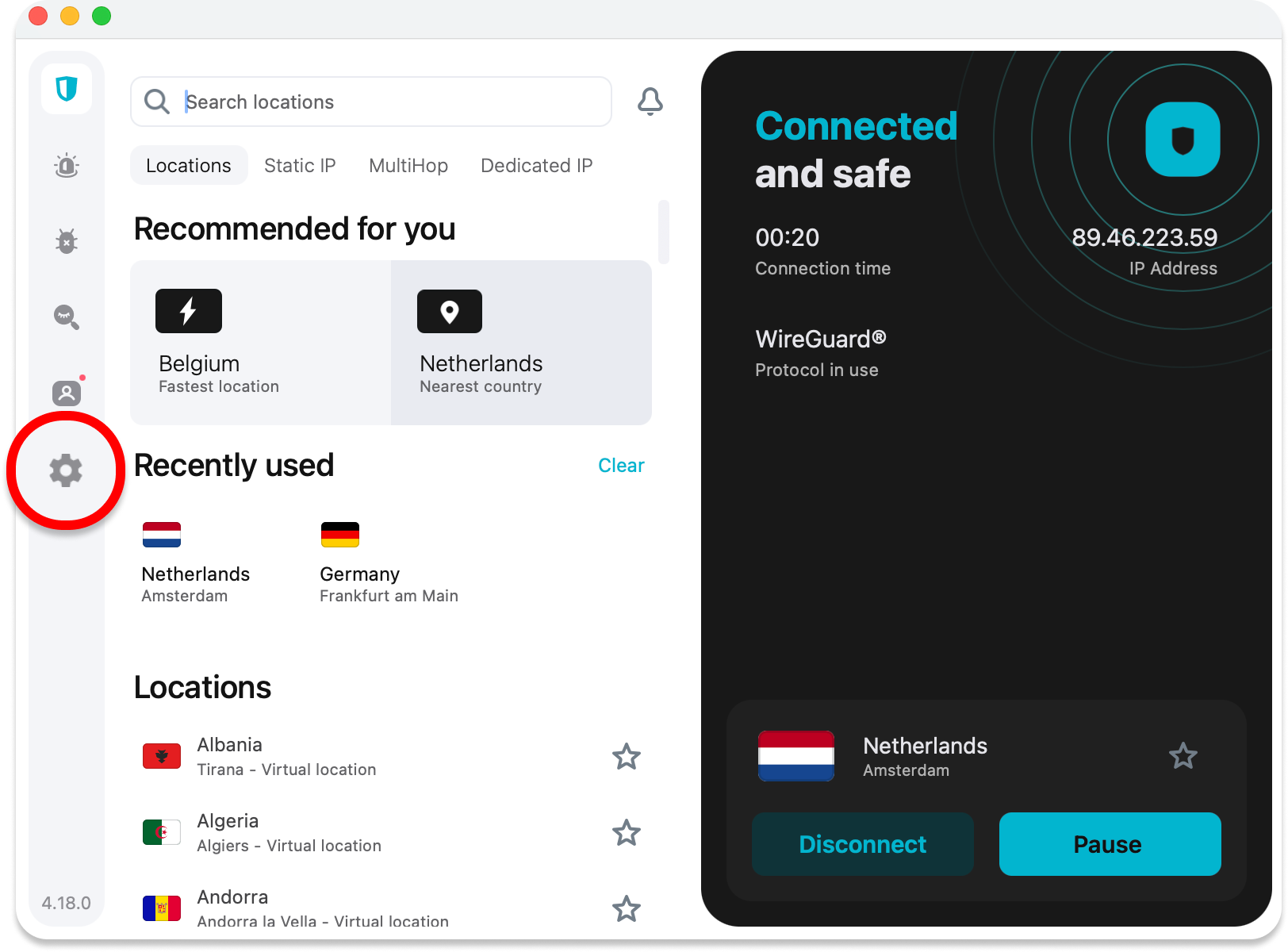 3. Reconnect to any location on Surfshark, and the websites or IP addresses on the Bypass VPN list will bypass the VPN coverage.