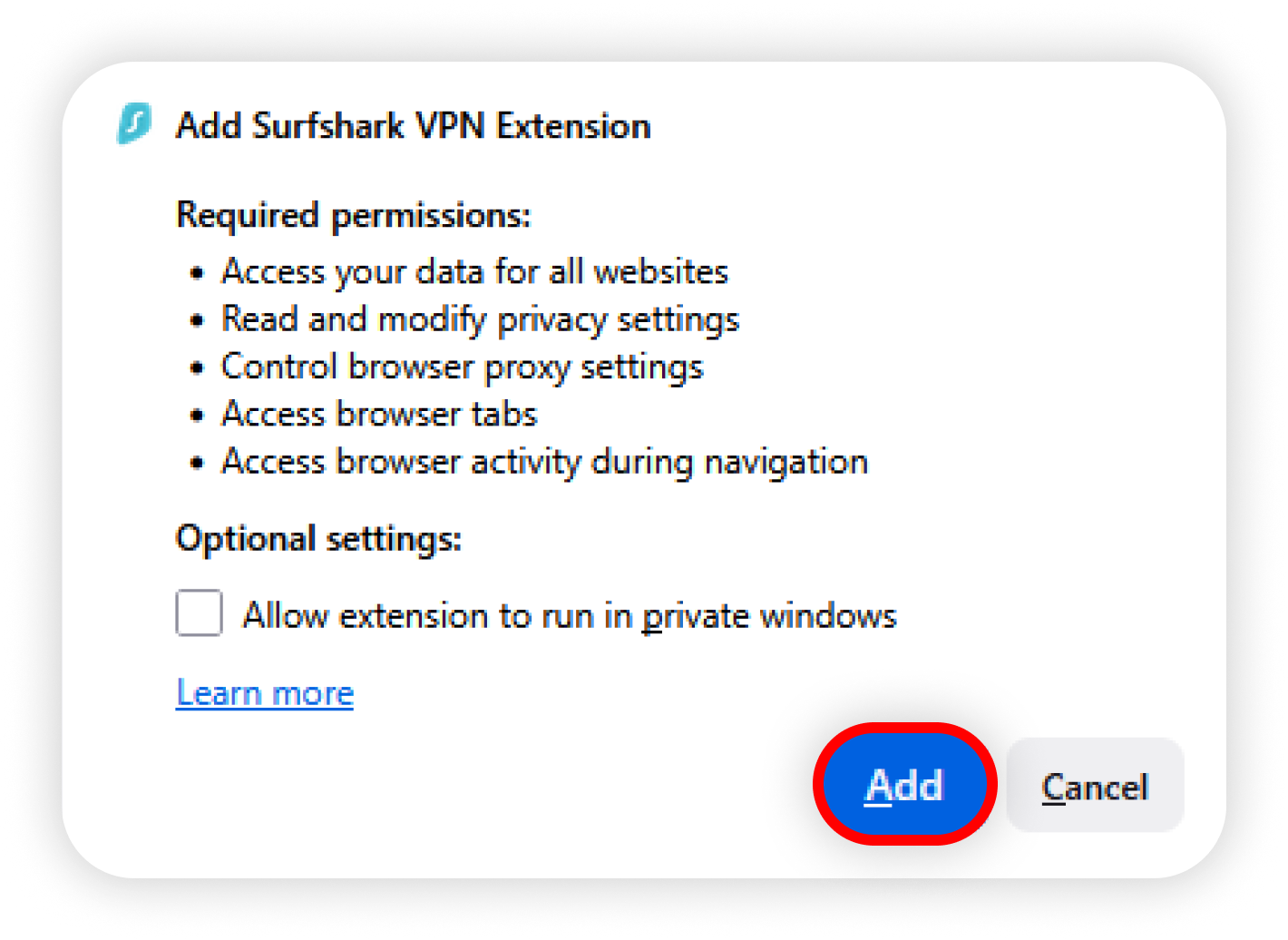 Install the Surfshark extension