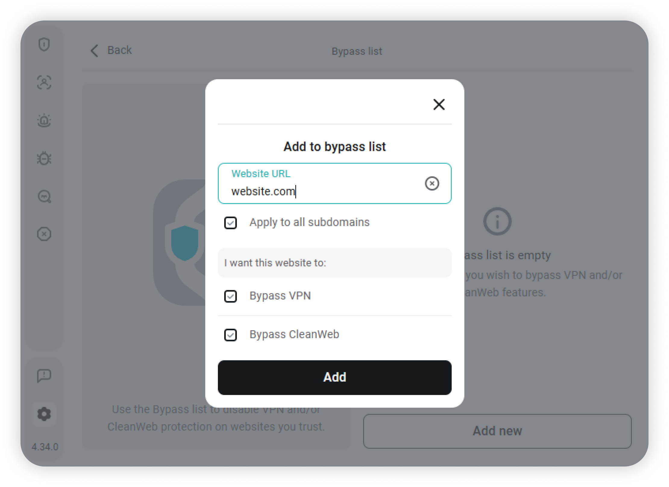 Gives you precise control over your connection. You can specify websites that should ignore the VPN connection or be exempt from CleanWeb's ad-blocking rules: