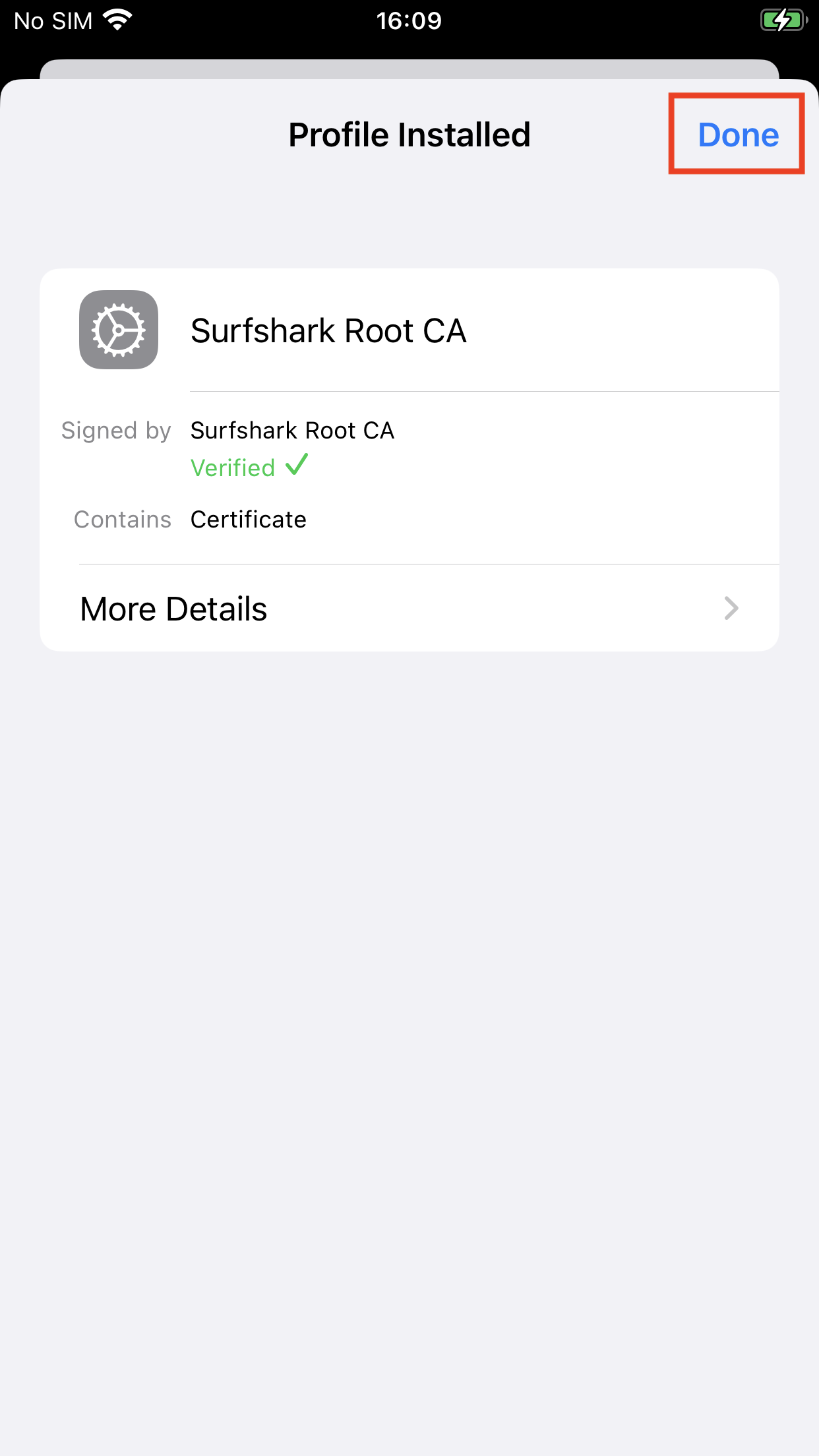 When the installation is complete, tap Done and proceed to the next step.