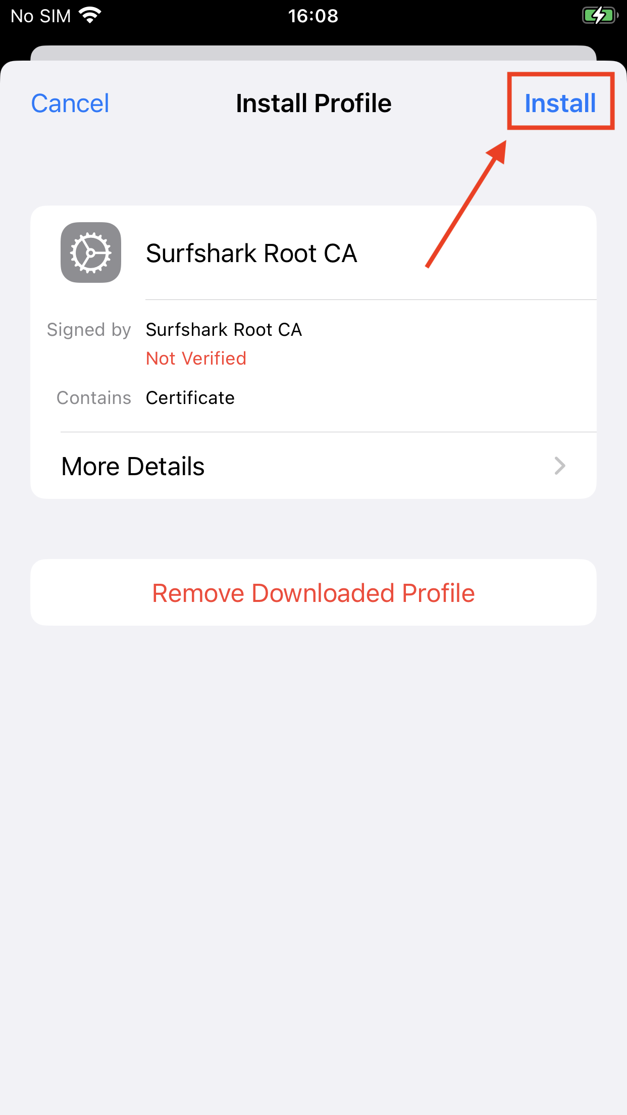 - When the download is complete, you will get a notification – Profile Downloaded.
