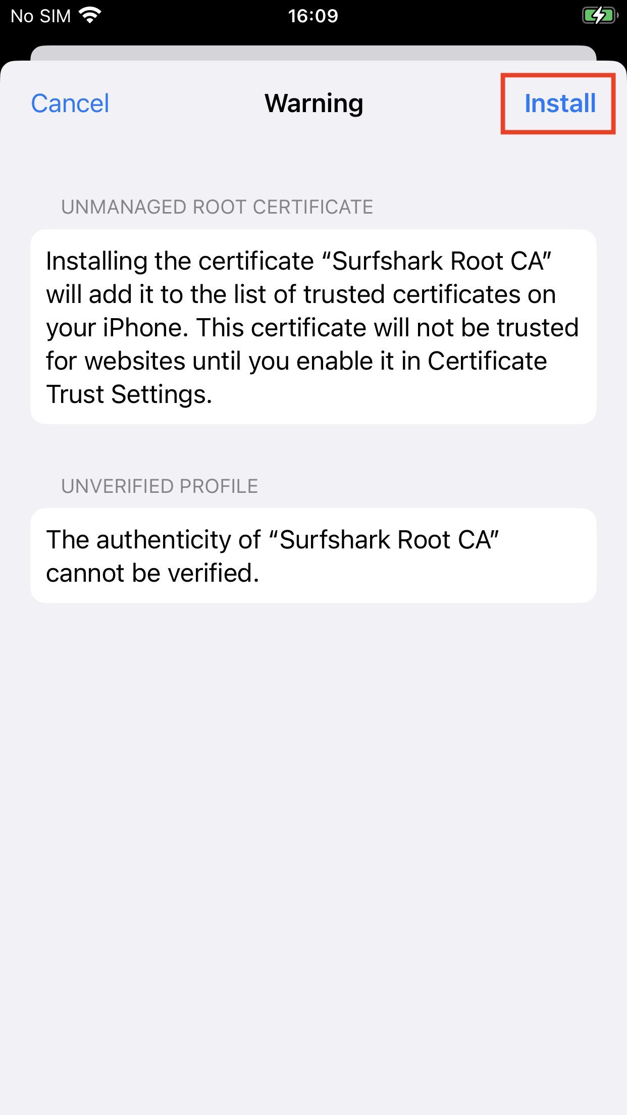 - After opening the profile, click Install.
