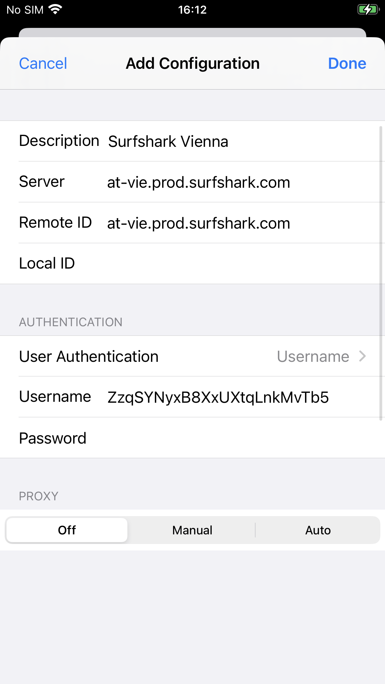 Username: Your Surfshark service credentials username. Refer to the Get your credentials part of this article.