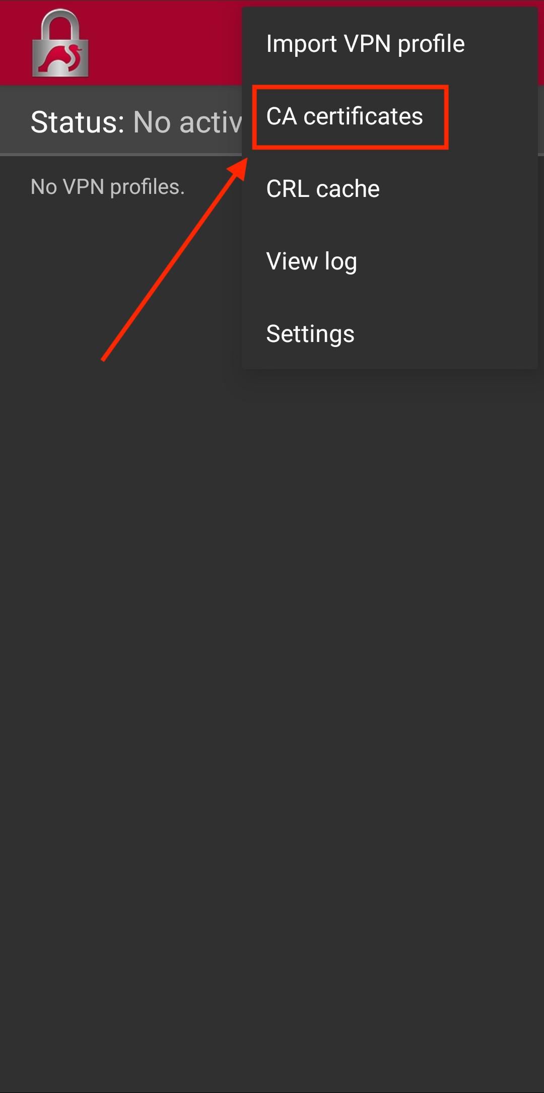 4. A certificate list will appear. Tap on the three vertical dots again.