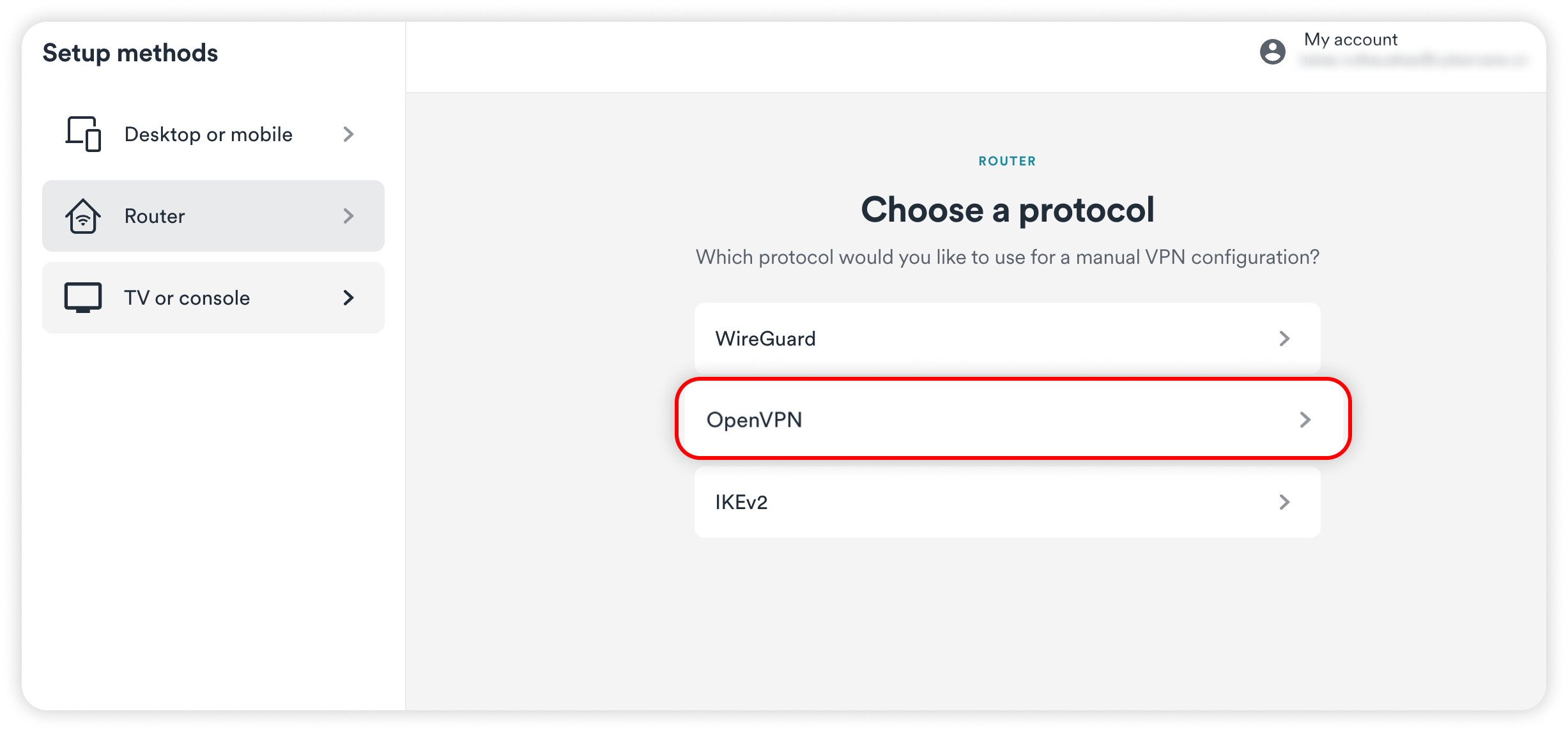 Before setting up the router, you will need to obtain the credentials for the manual setup and select a server to connect to.