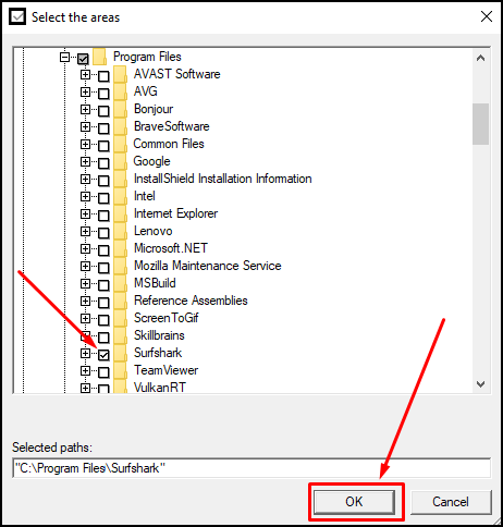 Once you navigate to the Surfshark folder, put a tick on it. Click OK.