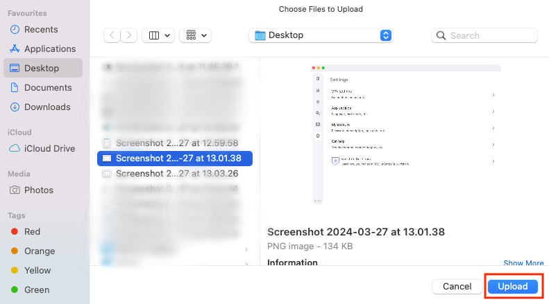 NOTE: In case the upload fails, make sure to disconnect from any VPN you are currently connected to and try attaching the screenshot again.