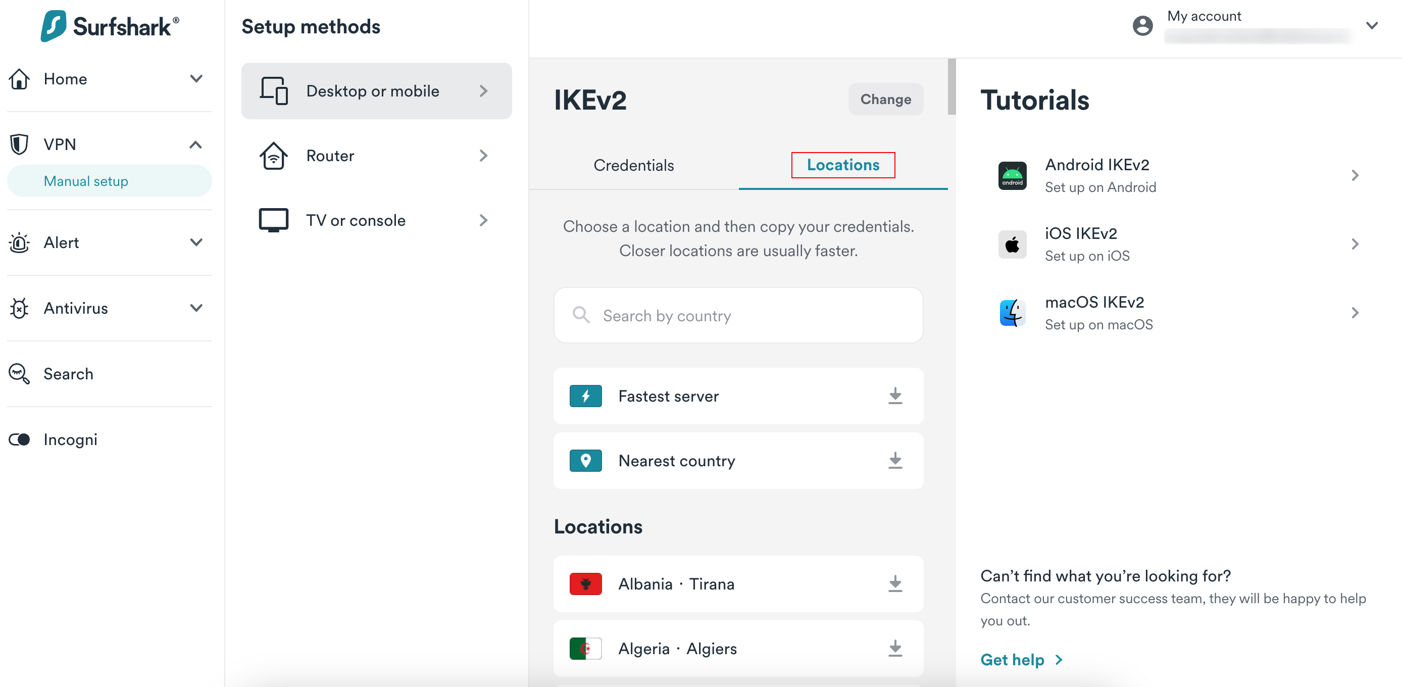 Here is how to find your Surfshark service credentials: