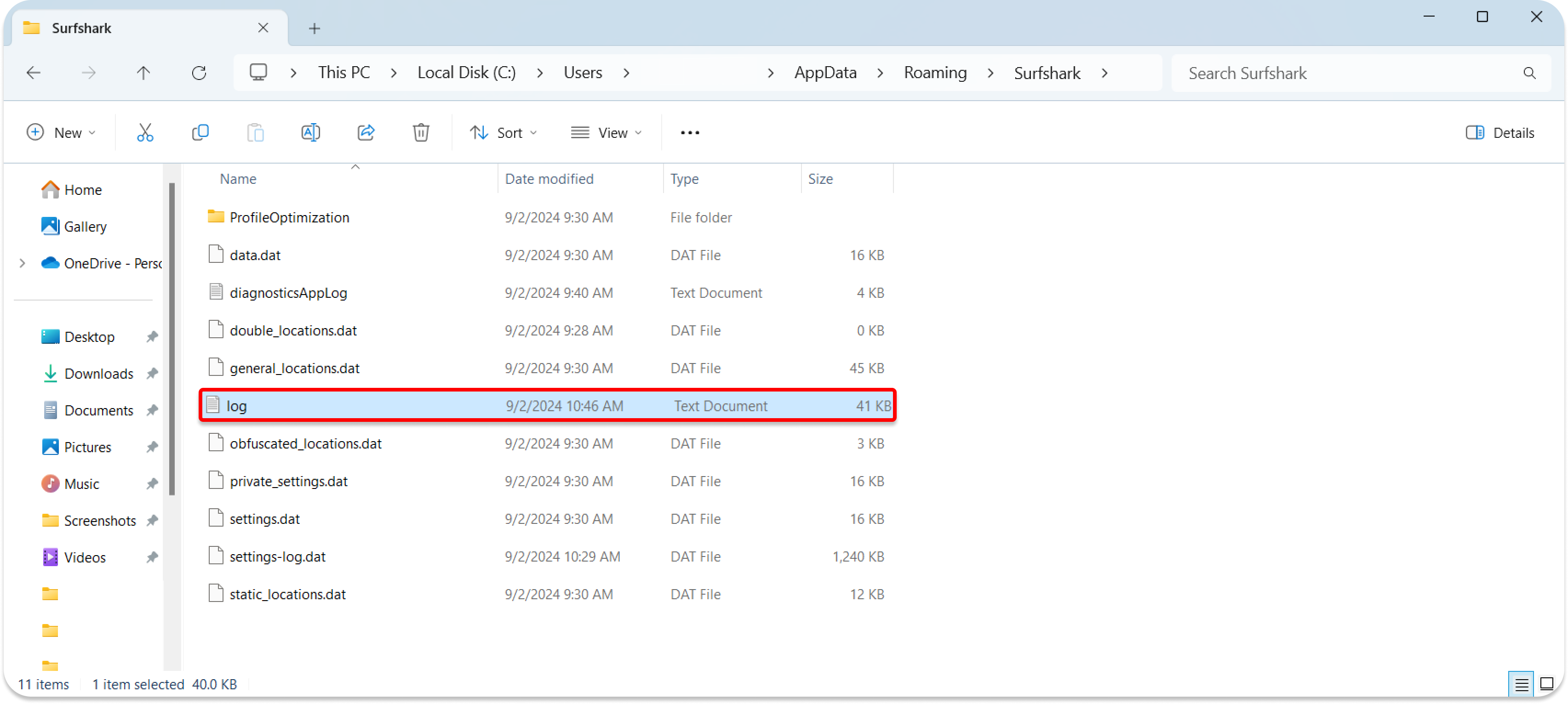 NOTE: If you still don't see these files, try opening %programdata% instead and check if such files appear in the Surfshark folder.