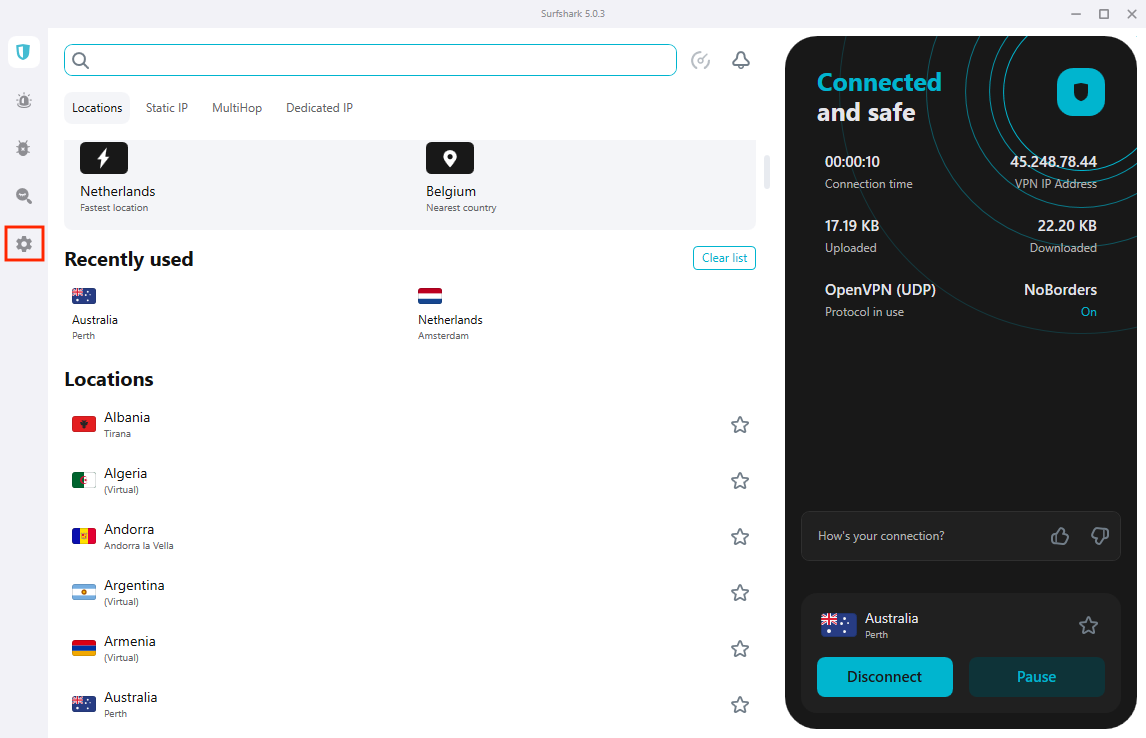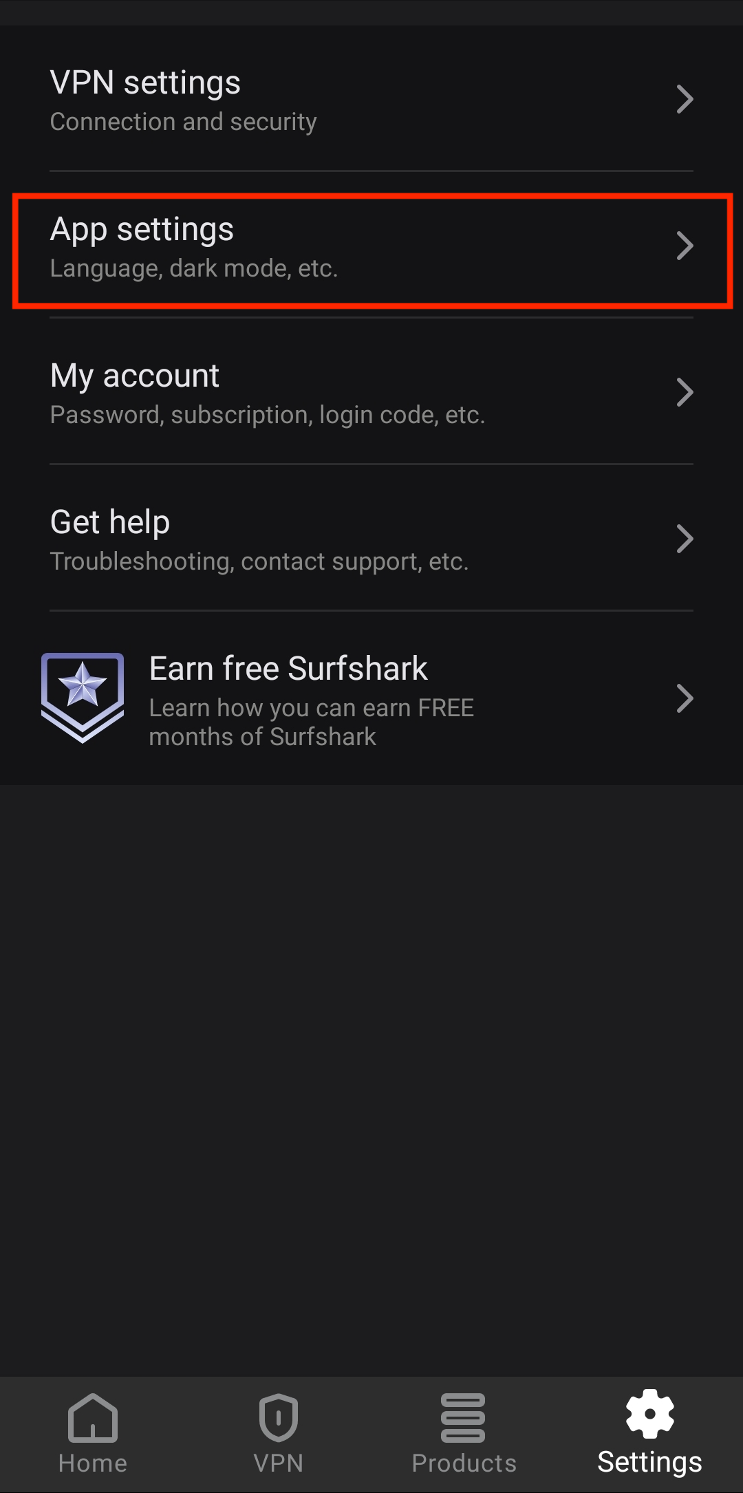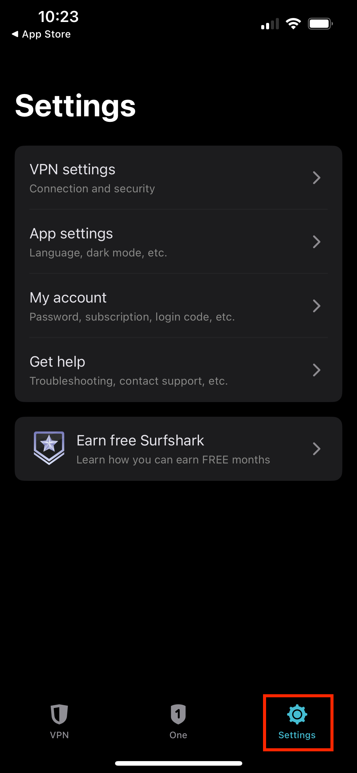 1. Open up the Surfshark app and tap on Settings at the bottom right.
