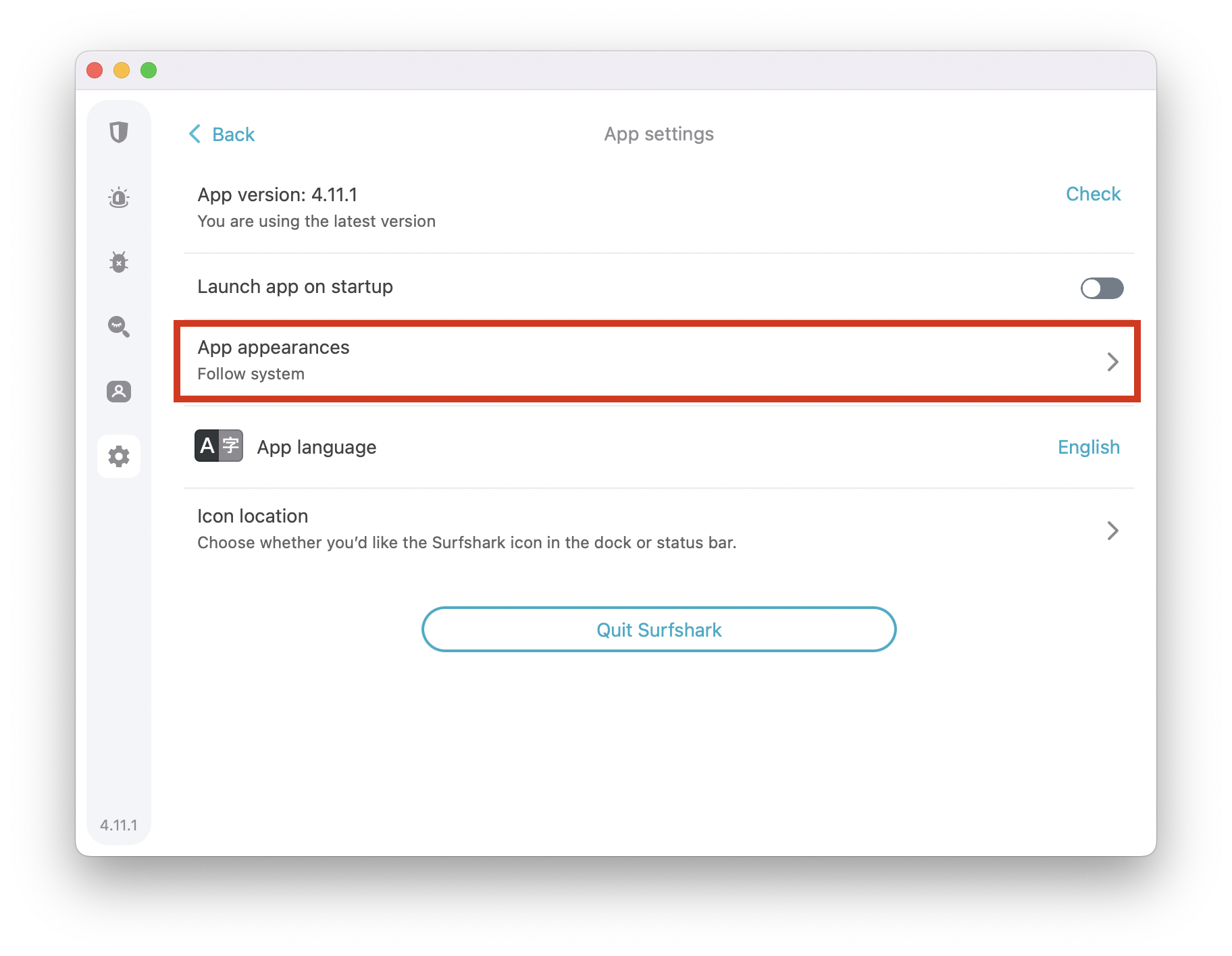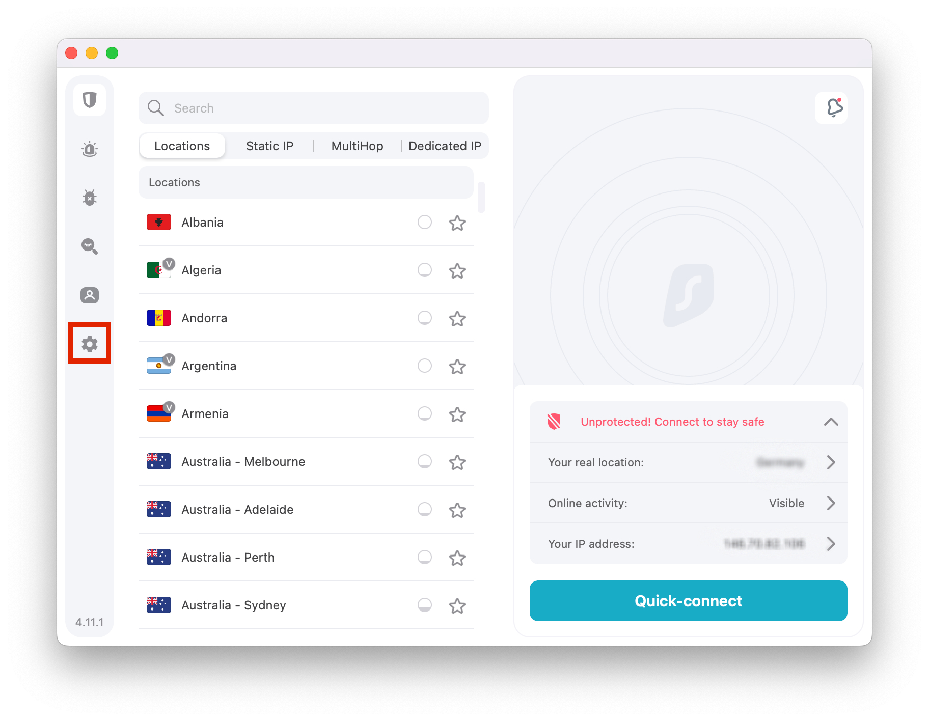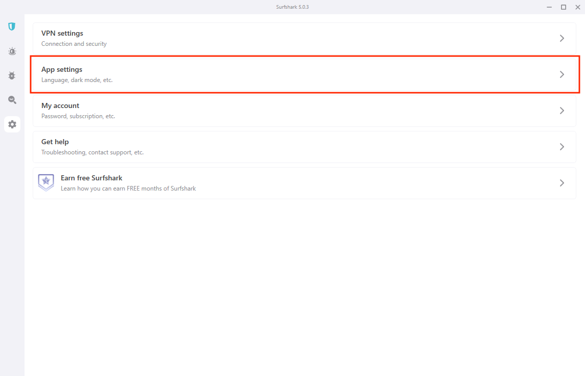1. Open up the Surfshark app on your macOS device and click on Settings.