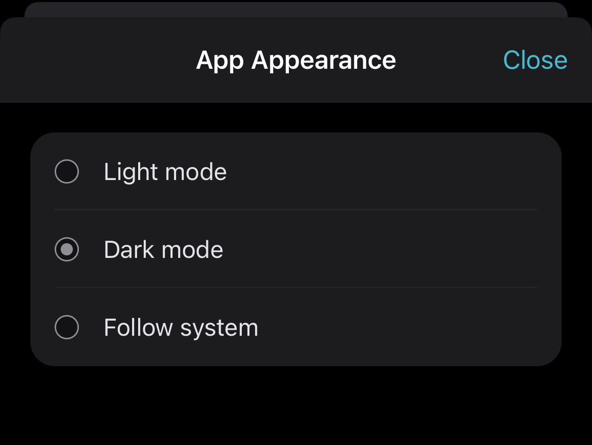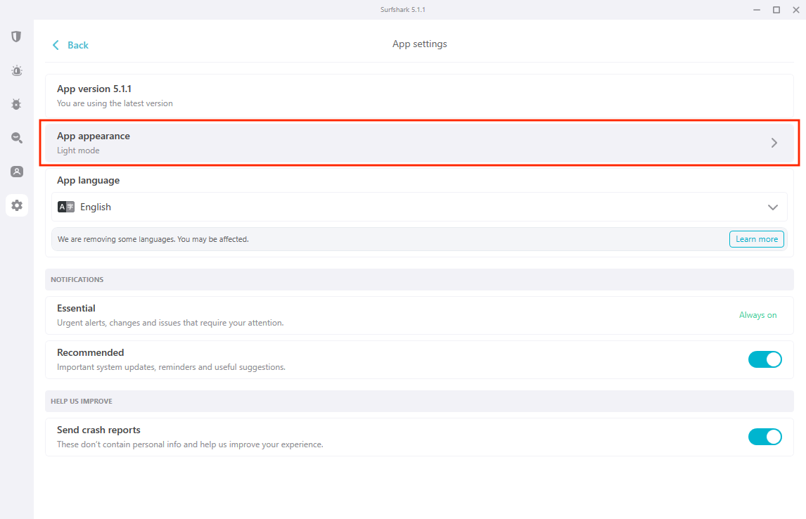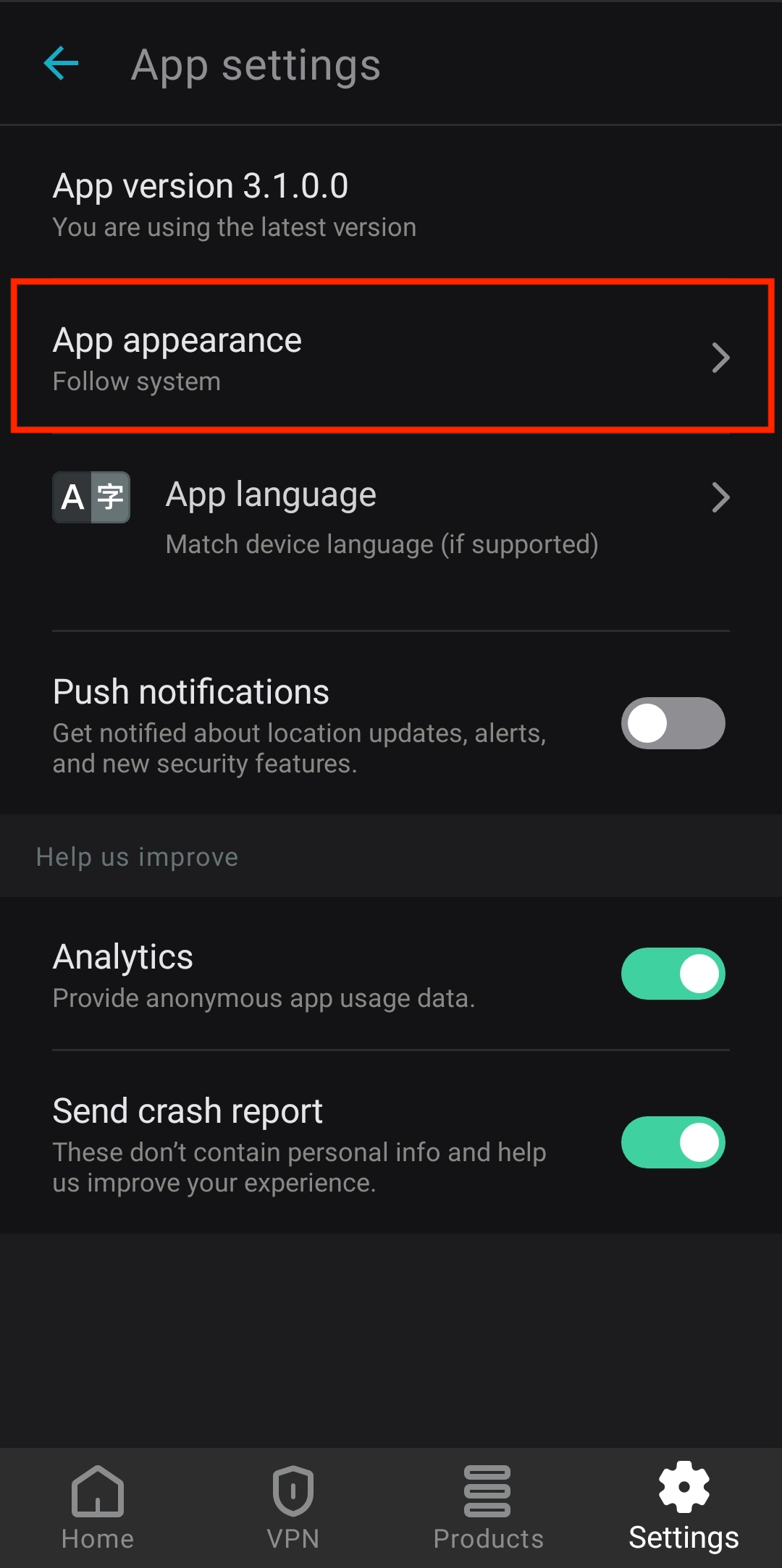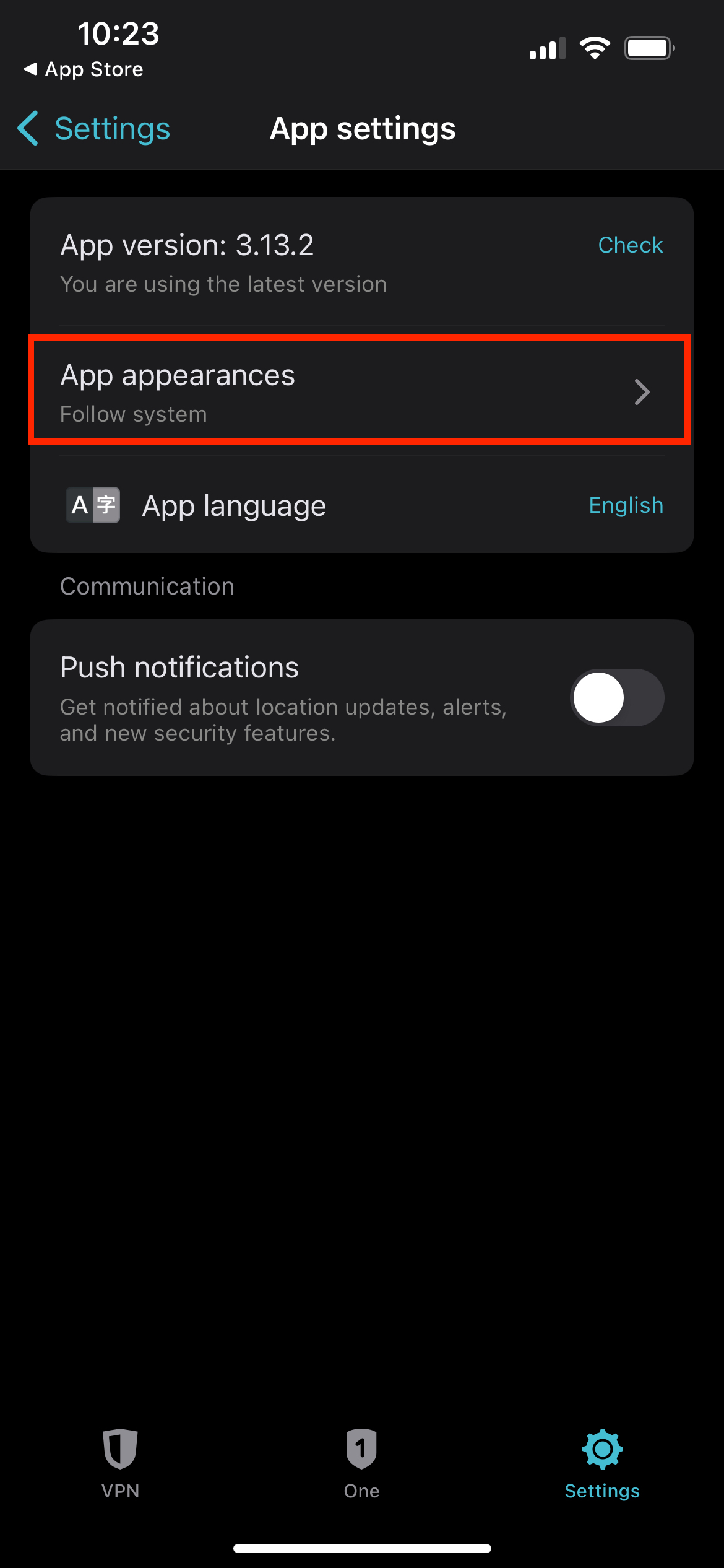 3. Now, click on App appearance. Once you do, you'll be able to select either dark or light mode.