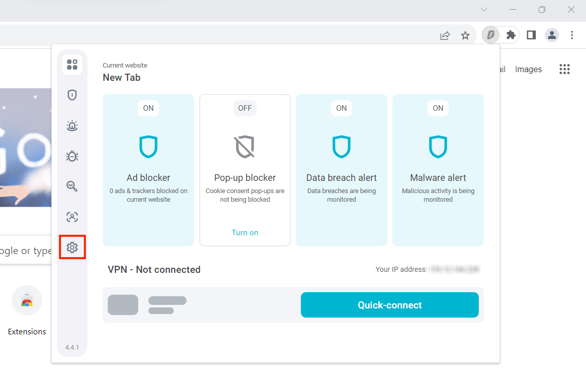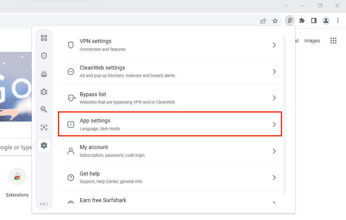 1. Open up the Surfshark browser extension on either Chrome, Firefox, or Edge. Once you do, click on Settings.