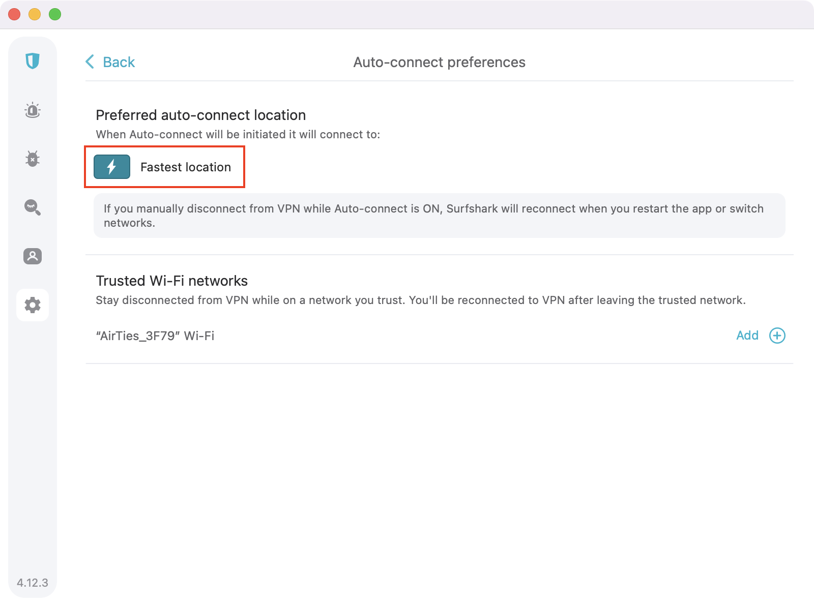 Auto-connect is a feature that will connect your device to the VPN as soon as it finds a Wi-Fi or ethernet connection. This feature can save you some time, as you won't need to open the Surfshark app and click any buttons to connect to Surfshark servers.