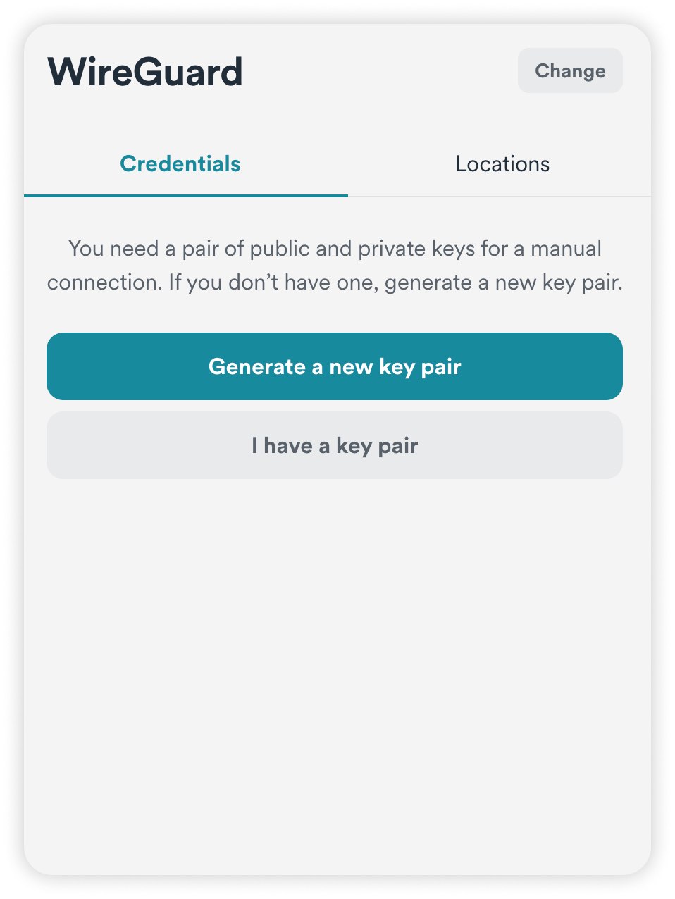 NOTE: If you have already created a key pair, simply press I have a key pair, and enter your public key.